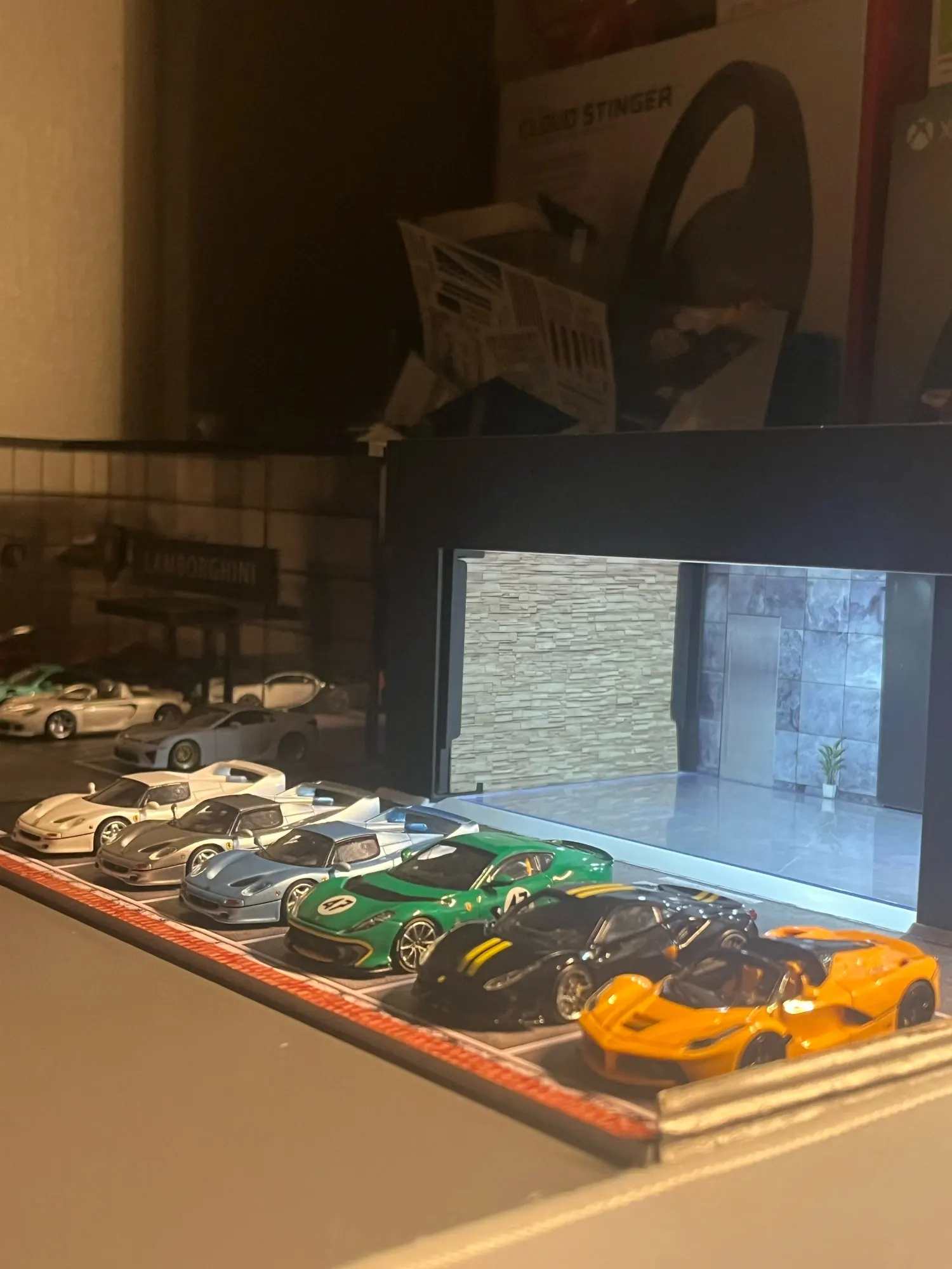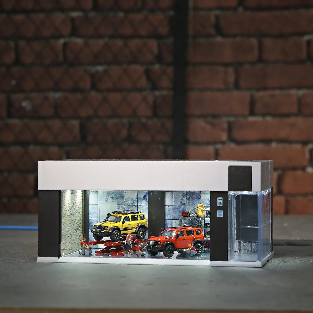Cool garage, there's sound, there's lighting, stickers included. True, my models are a bit large, but they fit. Overall an excellent product! 😎