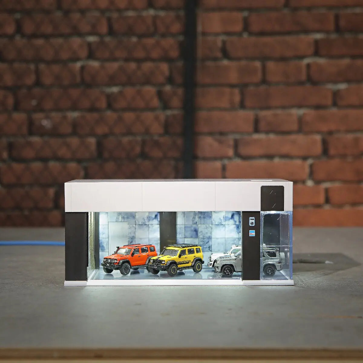Pudełko zostało zaprojektowane tak, aby wiernie odwzorowywać wygląd prawdziwego garażu. Dzięki automatycznemu oświetleniu i bramie rolowanej każdy model samochodu prezentuje się wyjątkowo autentycznie i efektownie.
